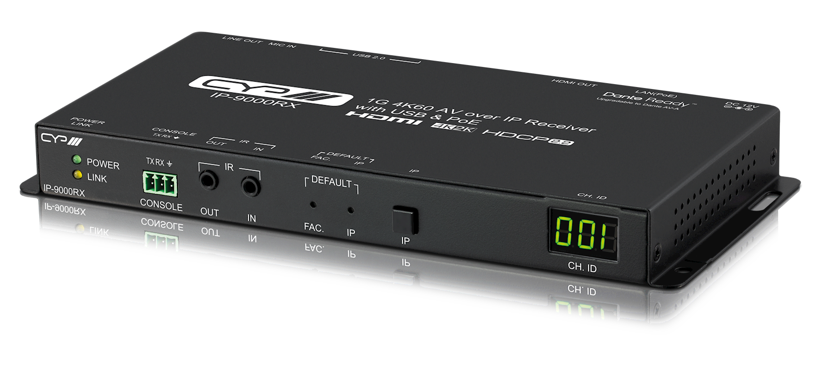 The IP-9000RX 1G AV over IP decoder with full 4K HDR and Dolby Vision support is the latest advancement in AV over IP technology. Supporting both Unicast and Multicast modes, enabling AV signals distribution with video wall modes and USB functionality in Multicast mode. It supports the transmission of Ultra High-Definition signals (up to 4K@60Hz 4:4:4 plus 4K HDR and Dolby Vision) with audio, IR, RS-232 and USB 2.0 up to 100m on a single cable. The USB connectivity allows for the connection of USB flash drives, webcams, keyboard, and mouse etc. The transmission distance can be further extended (up to 100m per segment) by using gigabit network switches, allowing the user to cascade the system without signal loss or introducing delay.