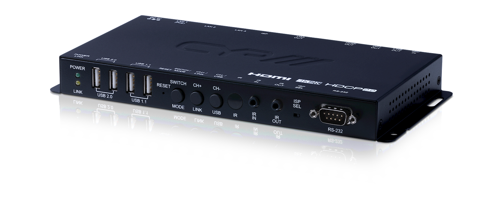 Control is via Telnet, IR Remote, WebGUI and RS-232 commands with On-screen Display (OSD) feedback messaging.