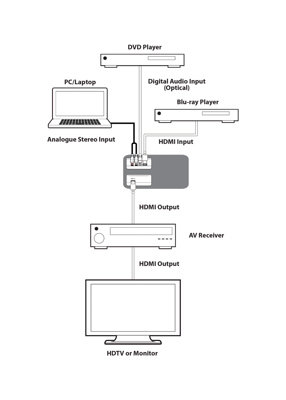 The AU-11CA Audio Embedder lets you insert an external audio signal into any HDMI source. The device allows you to insert analogue or digital stereo and multi-channel digital surround sound signals (via Optical) to give users the capability to overcome audio issues within complex HDMI installation. The AU-11CA also repeats the HDMI signal to allow an extended total HDMI cable range.