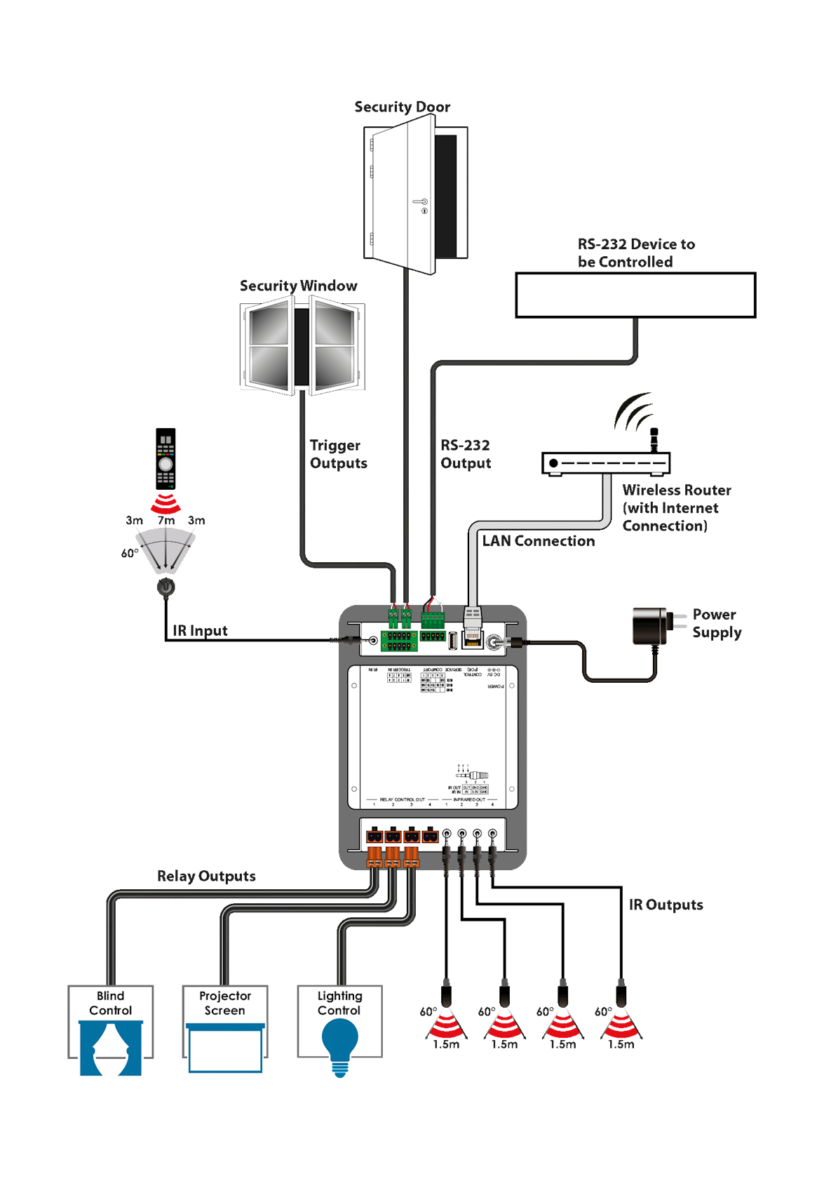The CR-CS2 is a simple Control System for a wide variety of connected devices. It has 16 user defined macro events stored within the unit activated via the WebGUI or by telnet, eight of which can also be activated by the external trigger connections. User defined macros can send commands to remote devices via Ethernet, IR (x4), relay trigger (x4), or RS-232/422/485 (x1) allowing for the control of a wide array of devices at the push of a button. An integrated IR code learning function is also available, allowing the user to store and re-transmit the IR codes sent by nearly any standard IR remote. Comprehensive user control interfaces are available including WebGUI, telnet and console (RS-232 in). Last but not least, the CR-CS2 supports Power over Ethernet (PoE) allowing it to be powered directly from a standard PoE network switch, without the need for an external power adapter, allowing for simple installation