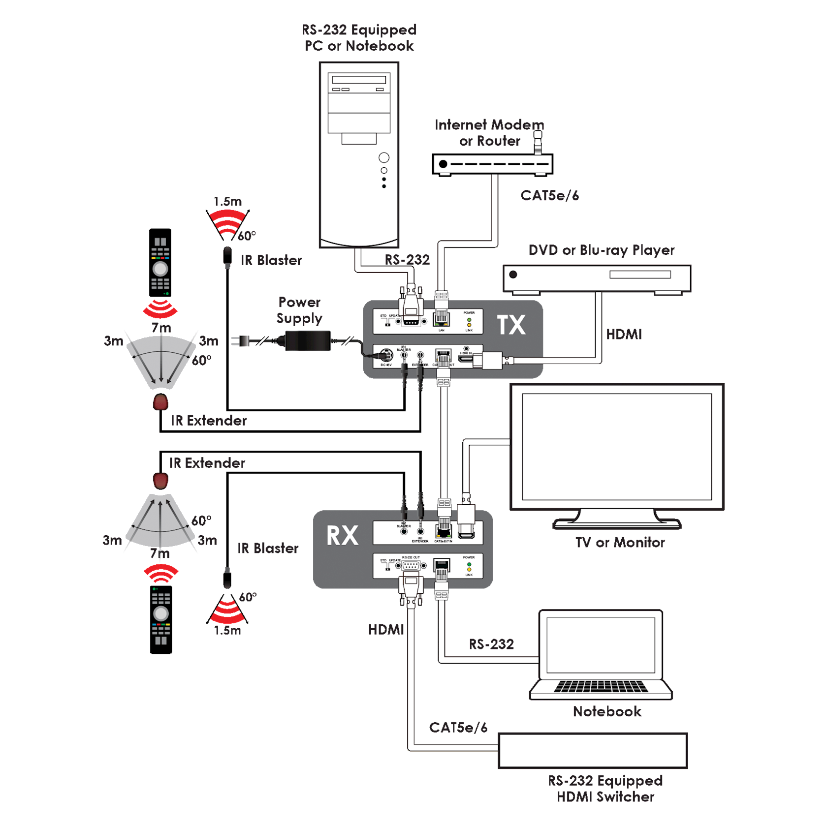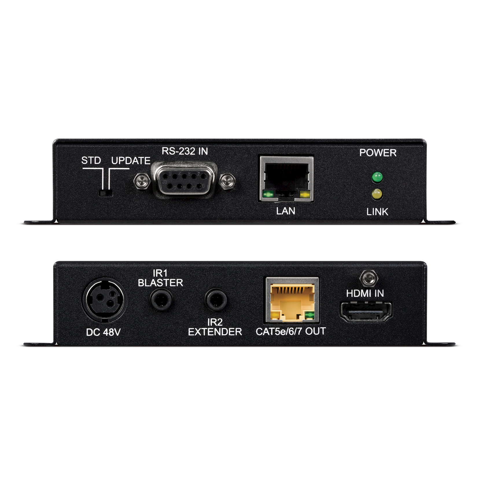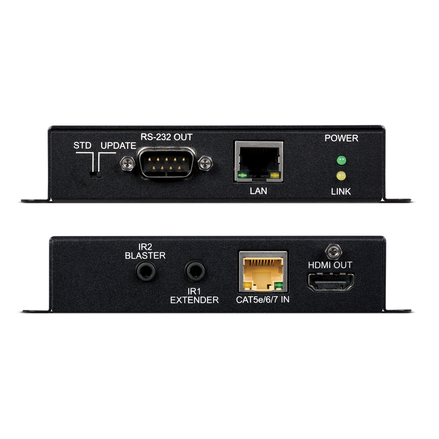 The PUV-1510-KIT Transmitter and Receiver KIT enables transmission of video resolutions up to 4K UHD, along with HD audio, 2-Way IR, RS-232, PoH (Power over HDBaseT), and LAN signals up to 100m. This solution provides advanced signal management ensuring reliable results in the most demanding installation environments. All audio, video, control, and power are transmitted simultaneously over a single CAT6a/7 cable up to 100m.
