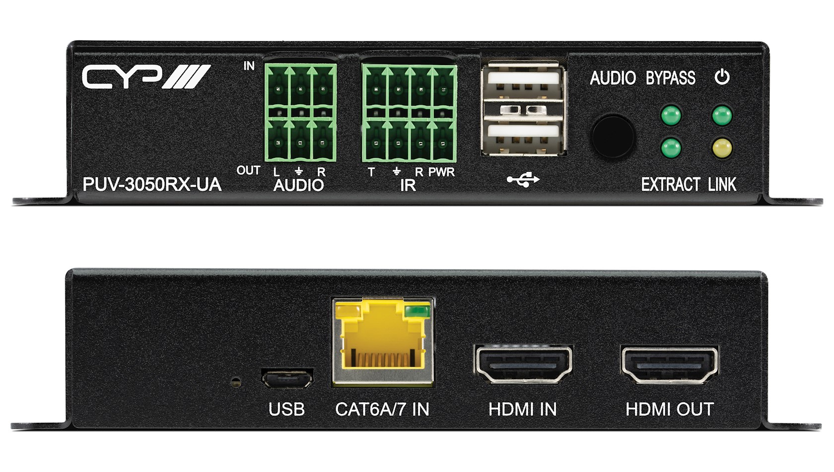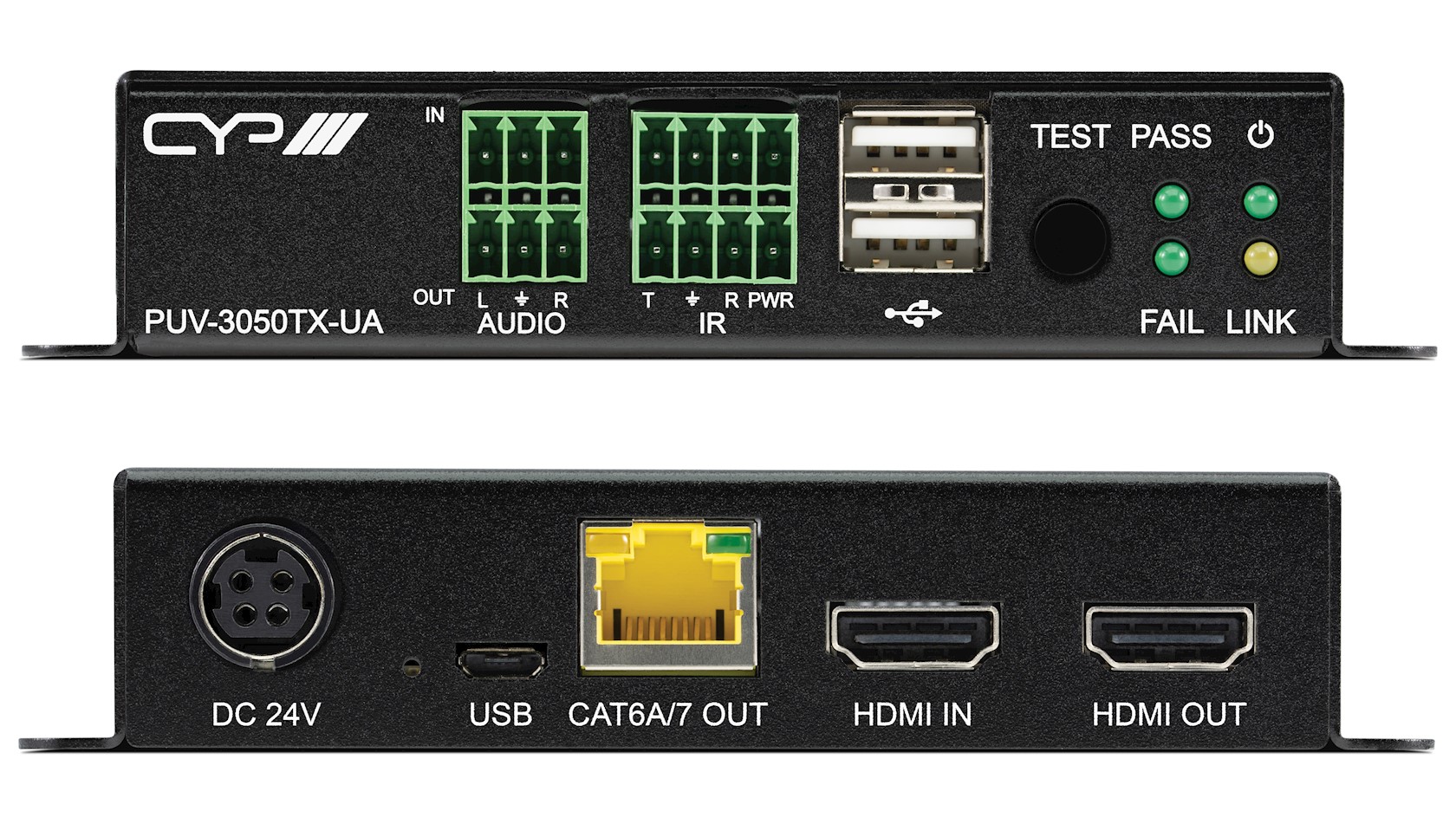 The PUV-3050UA-KIT is part of the new generation of HDBaseT 3.0 technology. This extender kit is capable of extending uncompressed HDMI 2.0 4K@60 (4:4:4, 8-bit or 4K HDR) video and HD audio, as well as control signals, via a single run of Cat.6a/7 cable over distances of up to 40 meters. Multiple control and data signals may also be transmitted along with the audio and video, including IR, RS-232, and USB 2.0.