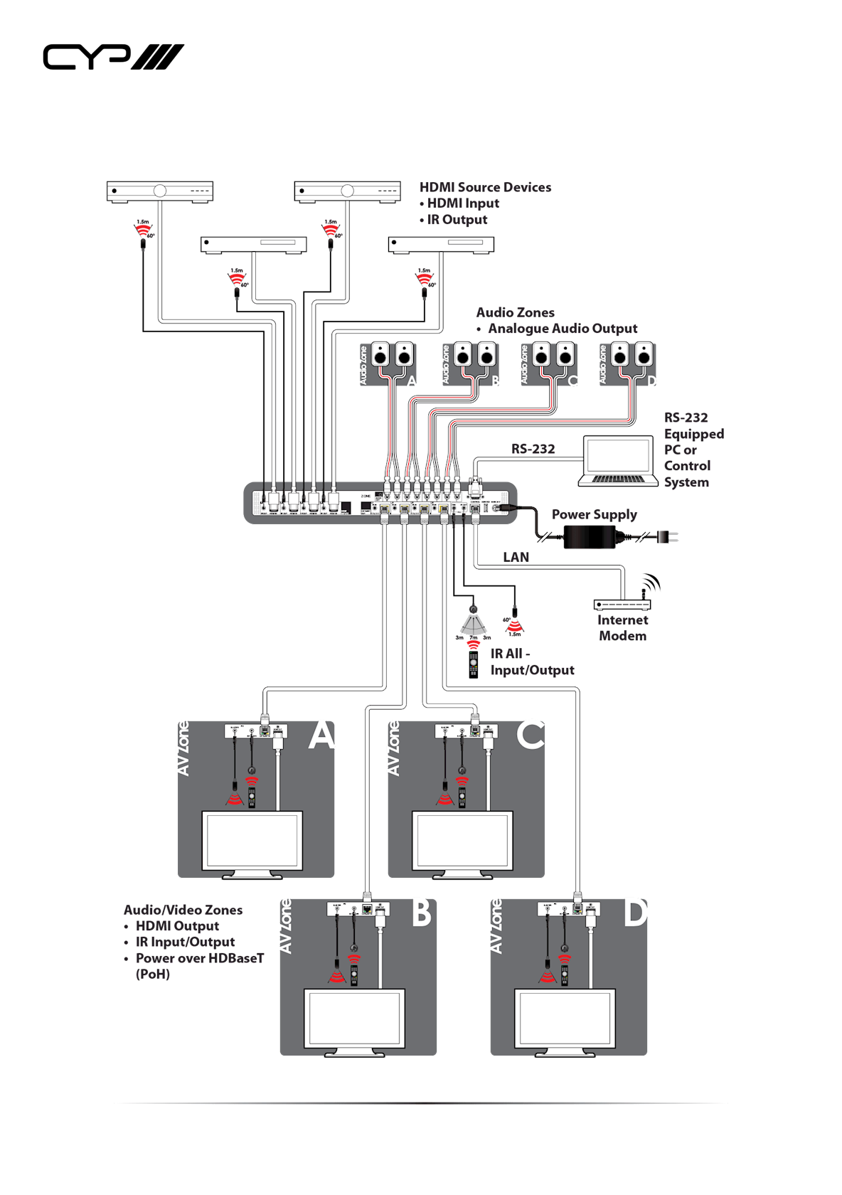 Control is via manual selection buttons, IR, RS-232, Telnet or Web GUI. CYP provide control drivers for all major control systems.