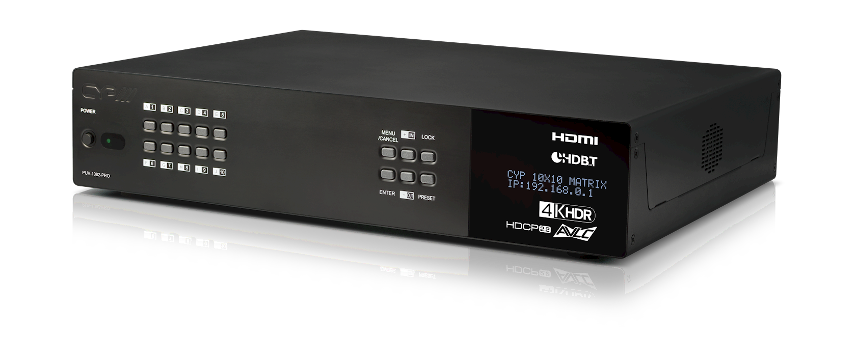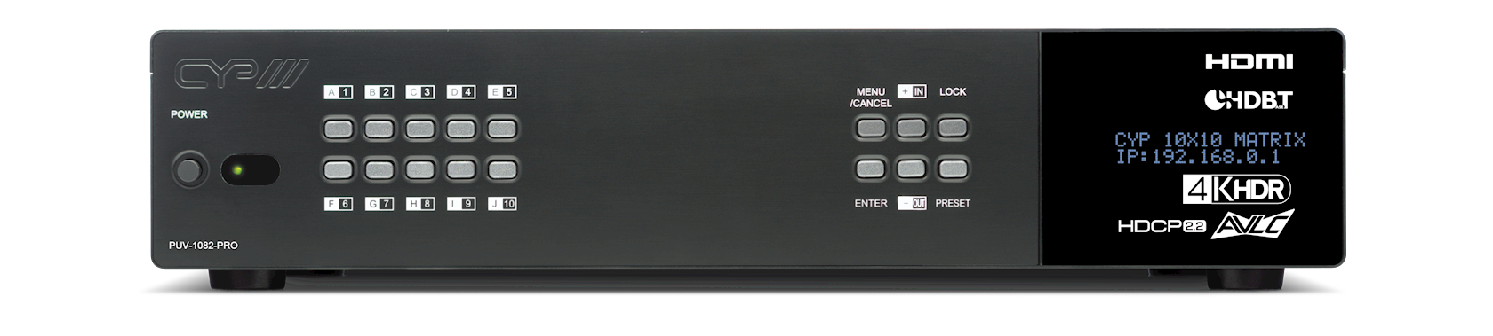 Control is via manual selection buttons, IR, RS-232, Telnet or Web GUI. CYP provide control drivers for all the major control systems. This unit also supports RS232 pass-through to the receivers. The PUV-1082-PRO is designed to be used with PUV-1830RX-AVLC or PUV-1810RX-AVLC receivers that utilise the PoH and LAN capabilities of the matrix.