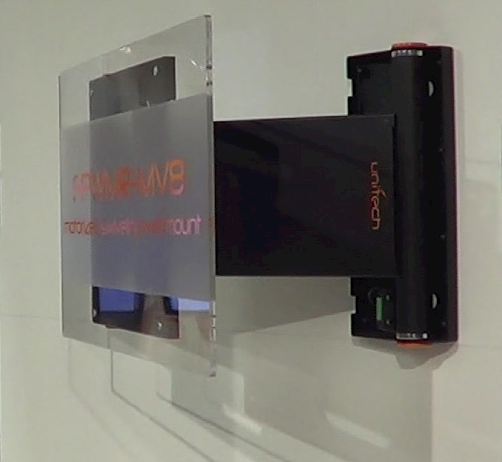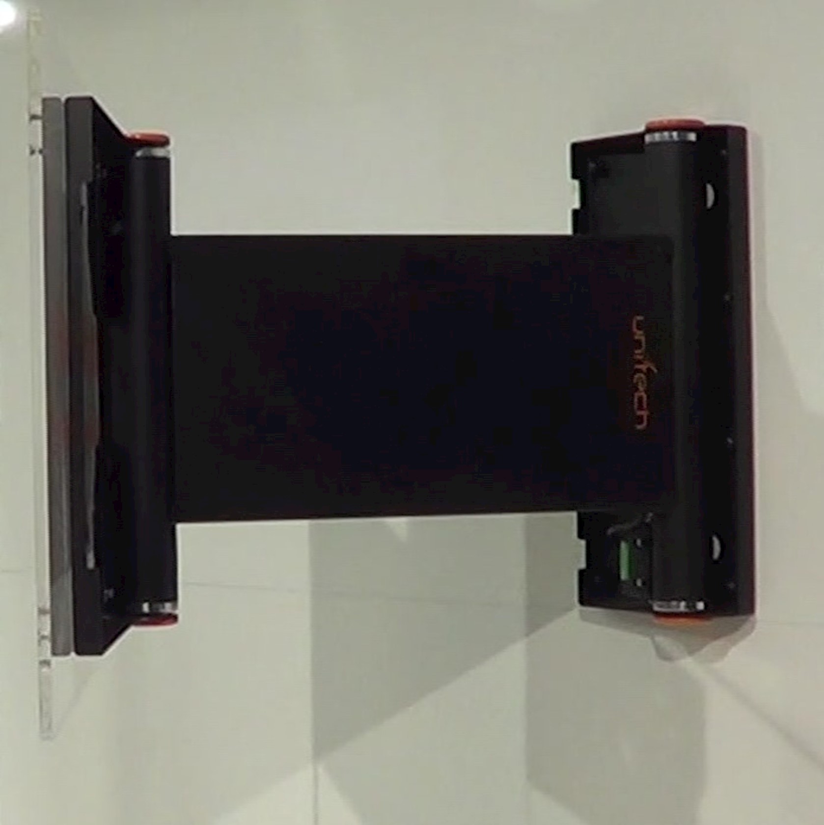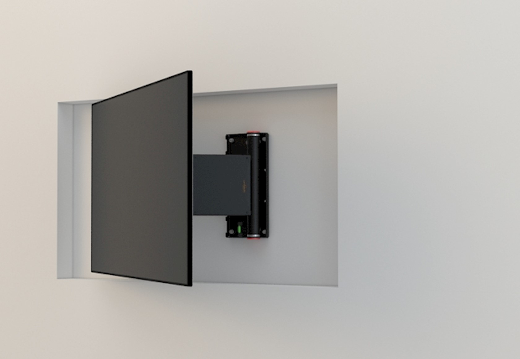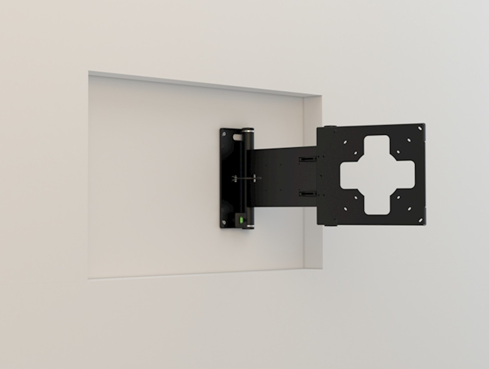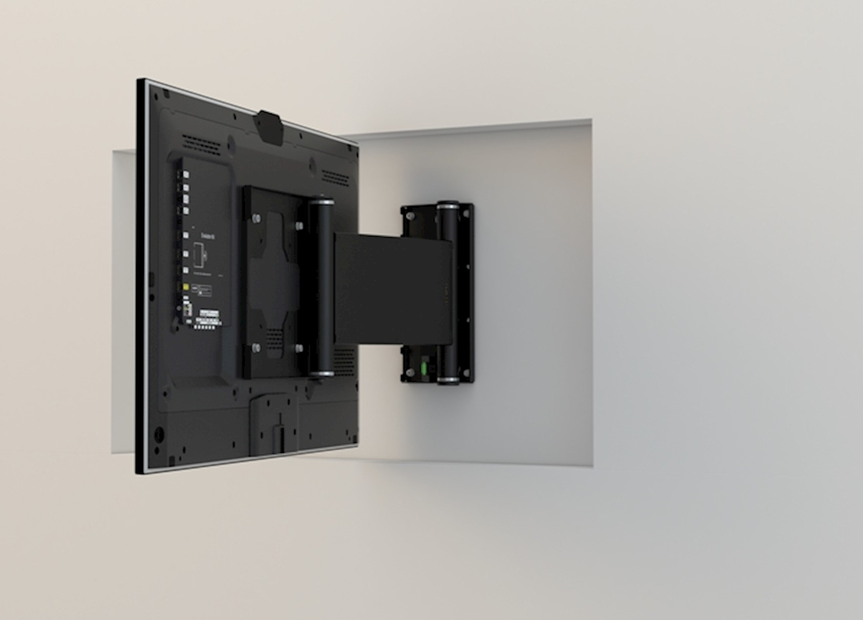 Motorized swiveling wall mount, with articulated motion, for flat panels from 40" up to 65". Silent operation with swiveling angle up to 70degrees. Suitable for wall hatches and for maximum load up to 50kg.
