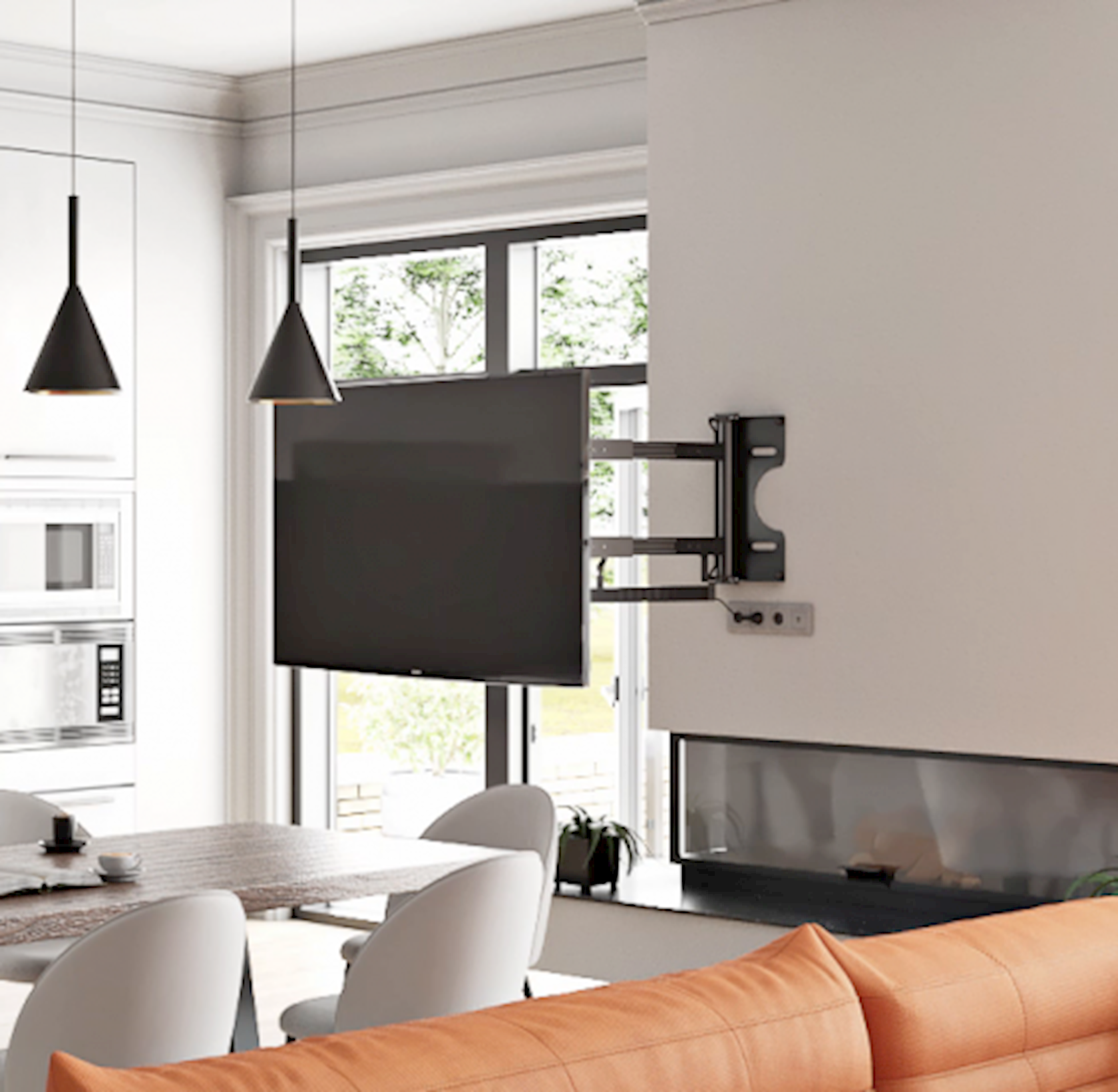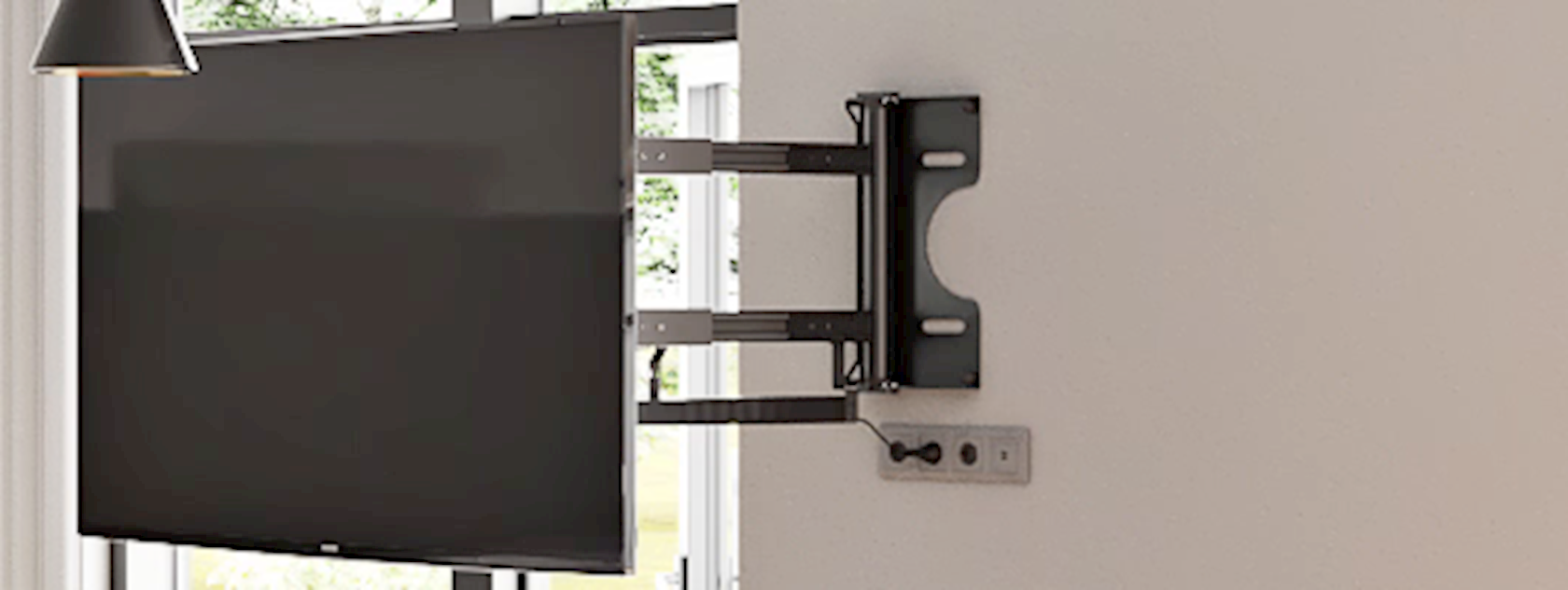 Flat panel wall mount with tilt, swivel and even bigger telescopic extension from wall, type FPWMRT V1.4-600. The mount that allows you to view your television from the room next door!